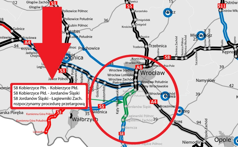 Nowa droga ekspresowa S8 Wrocław (Magnice) - Łagiewniki