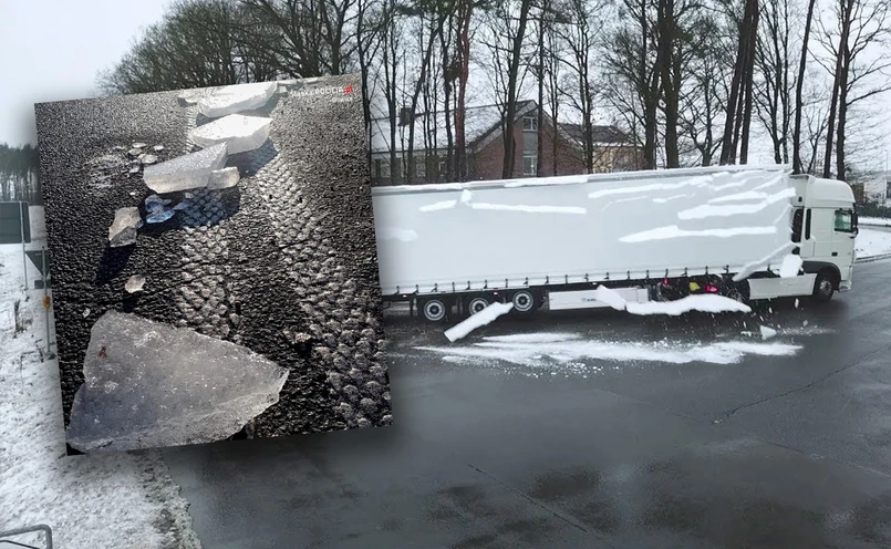 Lód z dachu ciężarówki