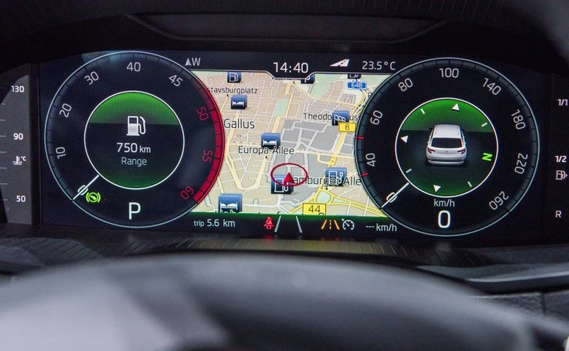 Czesi we Frankfurcie podkreślali z dumą, że Karoq jest pierwszy modelem w historii Skody, w którym zamiast analogowych wskaźników pojawi się wirtualny kokpit o dużej rozdzielczości (rodem z Audi). Na takim monitorze będzie można zaprogramować cztery układy graficzne wyświetlania informacji i ustawiać np. duży widok mapy nawigacji. Samochód dostał też sterowanie gestami, które znamy m.in. z nowego volkswagena golfa.