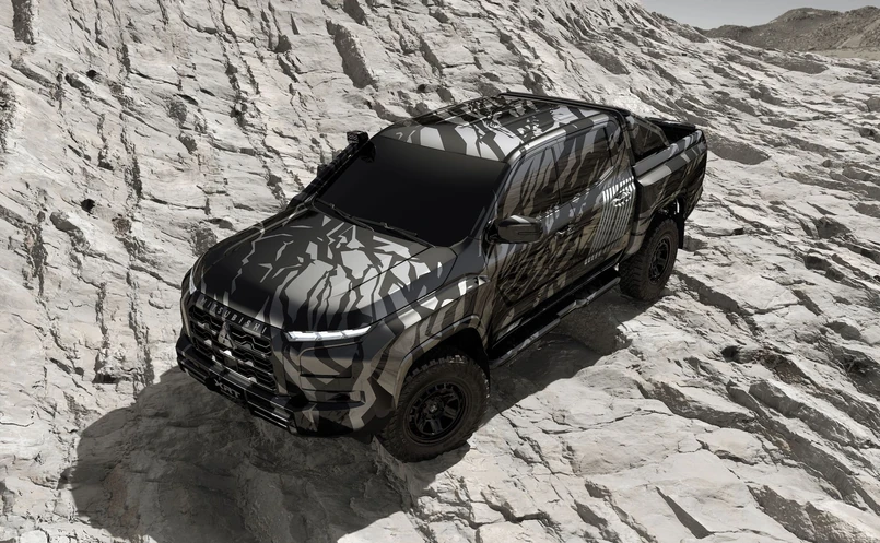 Na razie Mitsubishi jest dość powściągliwe w udzielaniu informacji, ale możemy przynajmniej ocenić wygląd nowego pikapa. Owszem koncept jest oklejony kamuflażem inspirowanym skałami wulkanicznymi i charakterystyczną grafiką Ralliart, ale pod tym maskowaniem można dojrzeć muskularne panele nadwozia i masywny przód z unikalnym dla Mitsubishi układem reflektorów i potężnym grillem.