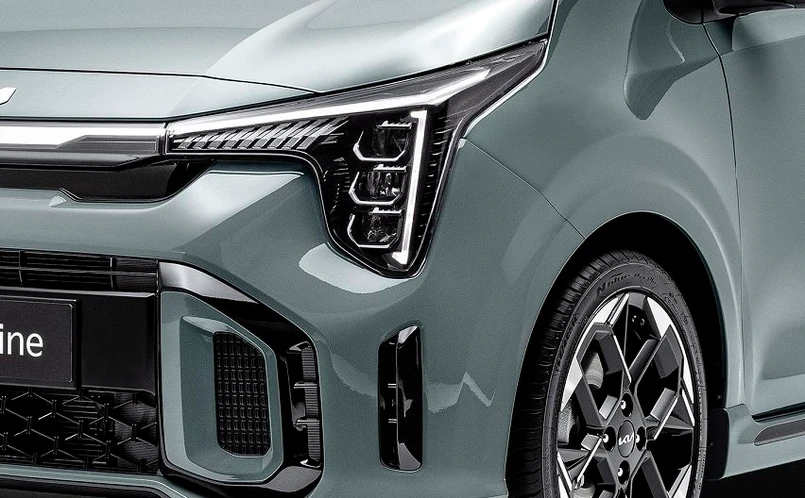 Już na pierwszy rzut oka widać, że zmiany wprowadzone w stylistyce Picanto inspirowane były najnowszym, flagowym SUV-em EV9 i filozofią uzupełniających się przeciwieństw, „która wykorzystuje twórcze napięcie generowane przez rozbieżne wartości natury i nowoczesności, aby stworzyć harmonijną całość”. Znajdziemy ją także w ostatnich odsłonach EV6, Sportage’a i Niro. Dzięki temu maluch zyskał bardziej wyrazistą, wręcz agresywniejszą prezencję nadającą mu cechy crossovera. Uwagę zwraca nowa sygnatura świetlna, wraz ze zmodyfikowanym przednim zderzakiem, charakterystycznym "tygrysim nosem", błotnikami i maską. W topowym pakiecie wyposażeniowym GT-line (widoczny na zdjęciach) standardem są reflektory LED i światła do jazdy dziennej połączone ledową poziomą listwą. Podobny zabieg przeprowadzony został z tyłu, gdzie ledowy pas świetlny na klapie bagażnika łączy przeprojektowane lampy. Spoiler dachowy i dyfuzor w tylnym zderzaku dodają sportowego charakteru.