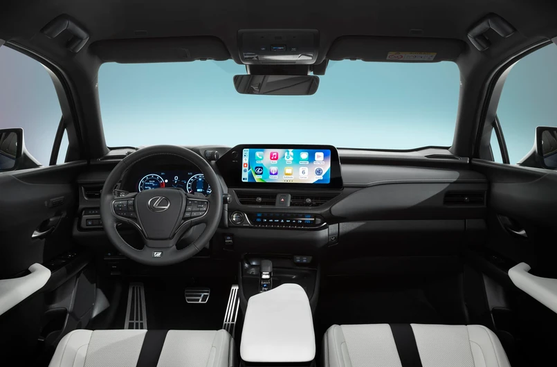 We wnętrzu UX 300h debiutują cyfrowe zegary o przekątnej 12,3 cala - ich układ zmienia się w zależności od wybranego trybu jazdy. 8-calowy wyświetlacz stacji multimedialnej także jest nowy. Na kolumnie kierownicy pojawiła się kamera systemu Driver Monitor – to rozwiązanie sprawdza czy prowadzący pojazd jest skupiony na jeździe. Elektryczny przełącznik skrzyni biegów znany z modeli NX i RX zastąpił mechaniczny lewarek. Panel sterowania szybami zyskał eleganckie wykończenie. Wreszcie z poziomu aplikacji na smartfona można ustawić np. temperaturę, rozmrażanie szyb, ogrzewanie foteli i kierownicy. Nowością jest tapicerka w kolorze Ammonite Sand oraz pakiet wnętrza bez skóry naturalnej z siedzeniami z tkaniny lub skóry syntetycznej.