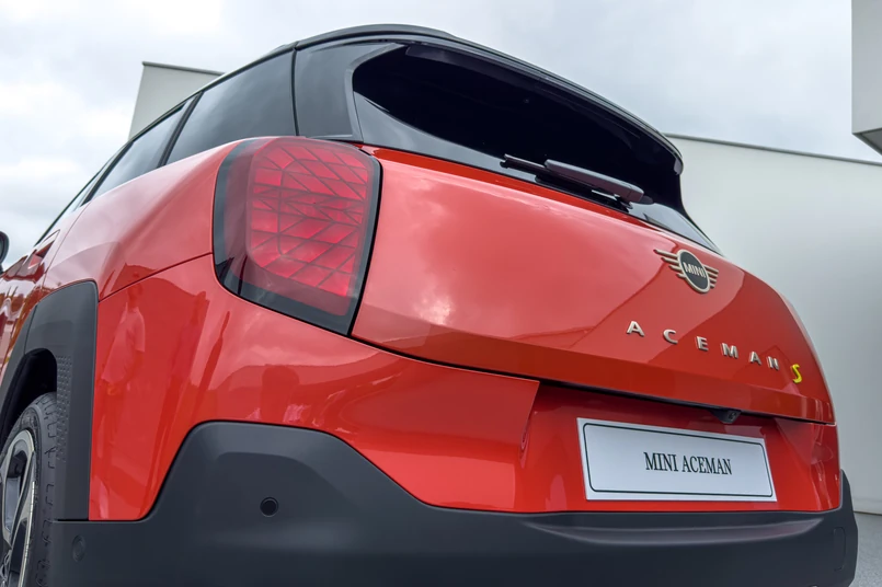 Nadwozie nowego Mini mierzy zaledwie 4070 mm, ale rozstaw osi to całkiem pokaźne 2606 mm. Ultrakrótkie zwisy mają gwarantować lepsze właściwości praktyczne, ale nie pozostają też bez znaczenia dla wrażeń z jazdy. Choć Mini mówi o Acemanie jako o "crossoverze", sylwetka bardziej przypomina jednak hatchbacka. Bagażnik również, bo 300-litrowy bagażnik nie należy do największych. Możliwość składania siedzeń pozwala zwiększyć objętość kufra, a regularne kształty również pomagają pomieścić niezbędne bagaże.
