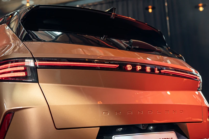 Wygląd auta poznaliśmy już w kwietniu 2024 roku. Po raz pierwszy z czystym sumieniem można nazwać Grandlanda "efektownym" - z przodu w oczy rzuca się podświetlana blenda z nowym logo, czyli Opel Vizor w nowym wydaniu. Iluminacja zdobi również tylną część nadwozia, w której lampy połączone są świetlną listwą z napisem "OPEL" w centralnym miejscu. Zgrabnie prezentuje się też nazwa modelu wytłoczona w klapie bagażnika. Z profilu uwagę zwracają 20-calowe felgi, a przetłoczenia na drzwiach dobrze komponują się z lekko opadającym dachem lakierowanym na czarno.