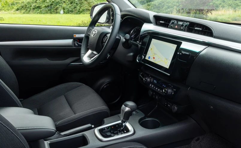 Zdecydowanie korzystniej wypada jednak Toyota Hilux Mild Hybrid 48V w wersji Executive. Taki pikap z miękką hybrydą to wydatek od 170 900 zł netto, czyli aż o 26 500 zł taniej. Auto jest bogatsze o 18-calowe felgi aluminiowe z oponami 265/60 R18, automatycznie ściemniające się lusterko wsteczne, światła do jazdy dziennej w technologii LED, automatyczne samopoziomowanie reflektorów, podgrzewane fotele siedzenia, nawigację satelitarną Toyota Touch 2 with GO w języku polskim z 3-letnią aktualizacją map, monitor panoramiczny z systemem kamer 360 stopni oraz przednie i tylne czujniki parkowania.