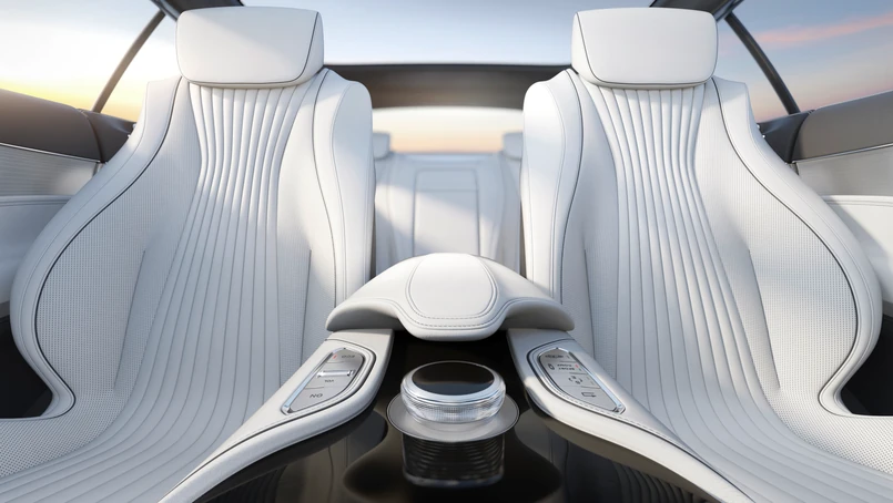5 W kabinie panuje prostota. W górnej część jarzą się dwa ekrany o przekątnej 12,3 cala. Futurystyczne otwory wentylacyjne wykonano z polerowanego aluminium, podobnie jak poszczególne elementy obsługi. Dotykowy wyświetlacz pomiędzy fotelami - zaprojektowany przez stylistów i inżynierów ze studia Mercedes-Benz w Kalifornii - wskazuje godziny w czterech wybranych przez kierowcę miastach świata.