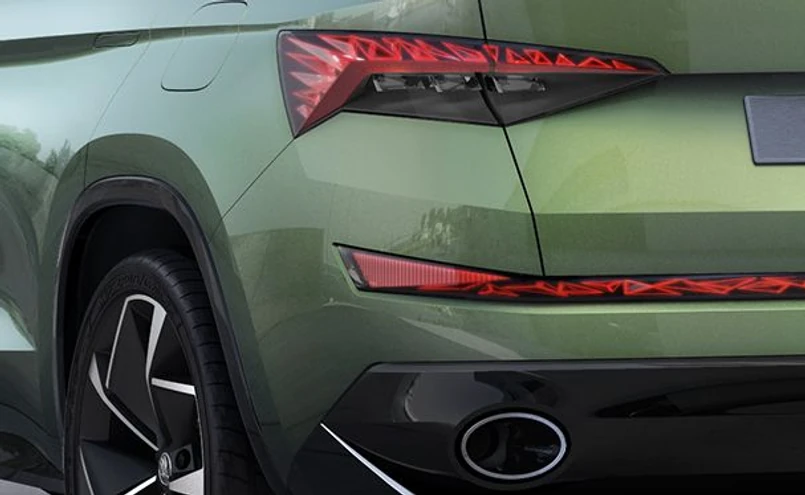 6 Producent twierdzi, że kabina nowego SUV-a będzie bardzo przestronna. VisionS dysponuje trzema rzędami siedzeń dla sześciu pasażerów. Słupek C - charakterystyczny dla Skody, zaczynający się na tylnych światłach - biegnie do płaskich świateł odblaskowych zamontowanych na zderzaku.