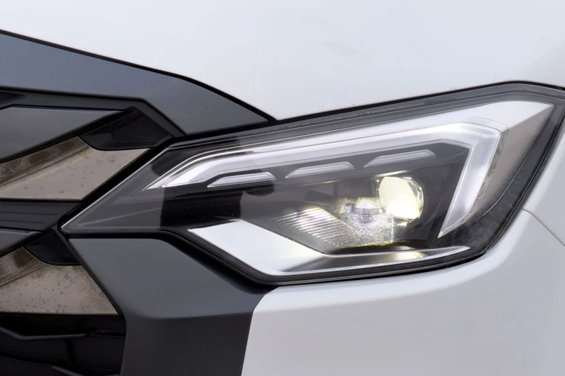 W bazowej odmianie L zestaw udogodnień jest zupełnie rozsądny: adaptacyjny tempomat, kamera cofania, systemy bezpieczeństwa aktywnego, czujnik deszczu i 8-calowy ekran multimedialny z Apple CarPlay i Android Auto to elementy - branżowy standard, nawet w klasie pickupów. Najtańsza konfiguracja z pojedynczą kabiną ma 16-calowe felgi stalowe, a wersje z podwójną kabiną wyjeżdżają z salonu na stalowych "osiemnastkach".