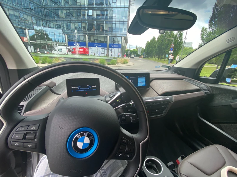 Nie podoba mi się za to zestrojenie zawieszenia. W połączeniu z dużymi, 17” felgami i wąskimi oponami, i3 jeździ dobrze, gdy ma pod sobą równą drogę. Wtedy cicho i szybko suniemy po asfalcie. Gdy pojawiają się dziury, samochodem mocno buja, więc trzeba zwolnić. No ale to auto na zachodnie miasta, a nie polskie osiedlówki