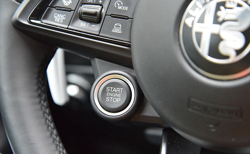 Centralne miejsce na desce rozdzielczej zajmuje 10,25-calowy ekran dotykowy systemu multimedialnego Uconnect. Bazujące na Adroidzie rozwiązanie jest łatwe w obsłudze, wyświetla obraz w wysokiej rozdzielczości, w tym z kamer 360 stopni i bez problemu współpracuje bezprzewodowo z Apple CarPlay lub Android Auto. Z poziomu menu mamy dostęp do większości ustawień pokładowych urządzeń, a także danych o kondycji auta. Te ostatnie da się też śledzić zdalnie dzięki dedykowanej aplikacji My Alfa na smartfony.
