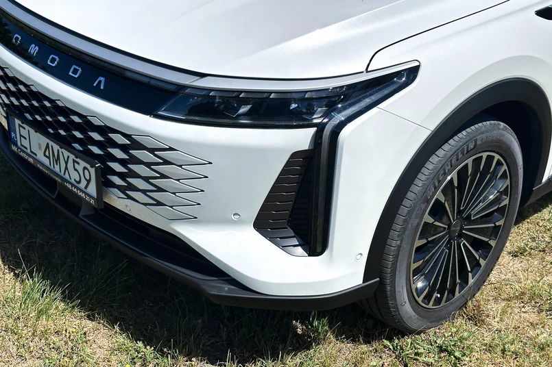 Omoda jest szczególnie dumna z elektrycznego zasięgu flagowego SUV-a. Auto pokona na prądzie aż 145 km bez konieczności ładowania. To zasługa baterii o pojemności aż 34,46 kWh czyli większej niż w niektórych miejskich autach elektrycznych. Akumulator można ładować prądem stałym o mocy 70 kW (w zakresie 30%-80% potrwa to 25 minut) oraz prądem przemiennym AC o mocy 6.6 kW, choć warto dodać, że mowa o prądzie jednofazowym. Trójfazowy wallbox 11 czy 22 kW, typowy dla europejskich garaży czy parkingów nie pozwoli "wycisnąć" tu więcej niż 3 kW. Dostępna jest też funkcja Vehicle-to-Load pozwalająca zasilać urządzenia zewnętrzne.