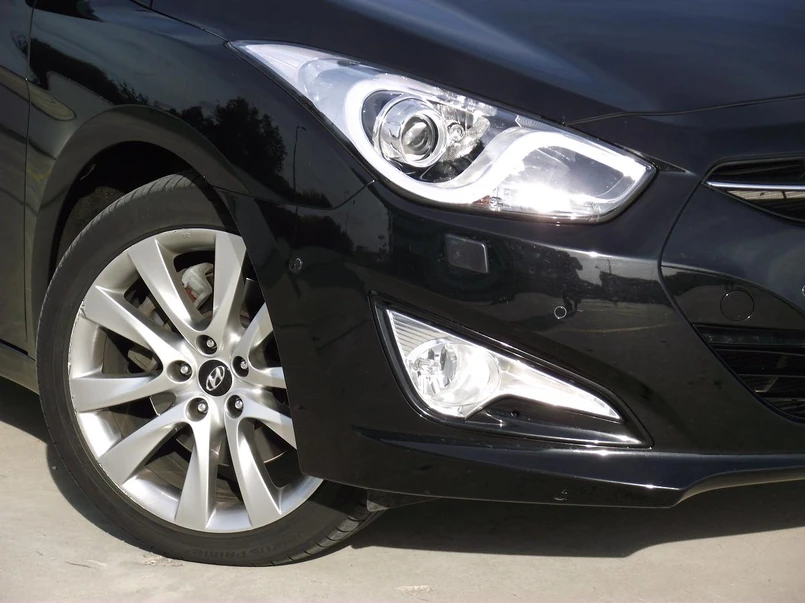 2 Podobnie jak inne auta w tej klasie hyundai jest wyposażony w światła LED do jazdy dziennej wbudowane w biksenonowe reflektory i doświetlanie zakrętów, relingi dachowe i chromowane elementy nadwozia takie jak grill i listwy wokół szyb. Najwyższa wersja wyposażenia premium obejmuje także aluminiowe felgi w rozmiarze 18 cali