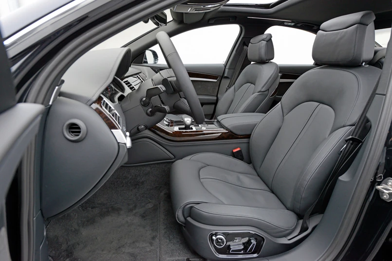10 Wnętrze największej limuzyny Audi rozpieszcza luksusem. Fotele przednie są dostępne w wielu opcjach, w tym z regulowaną pięciostopniowo funkcją wentylacji i masażu. A8 i A8 L mogą mieć dwa oddzielne, elektrycznie regulowane tylne siedzenia. Dla Audi A8 L można zamówić pokrytą skórą konsolę centralną, a tylny fotel można doposażyć w elektrycznie wysuwany podnóżek. Nowością w A8 jest także możliwość zamówienia jonizatora powietrza we wnętrzu pojazdu.